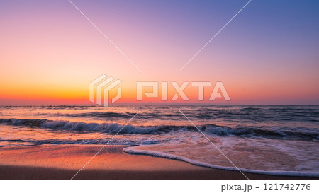 黄昏時の綺麗な海と青空|夕焼け空|Sky of sunset