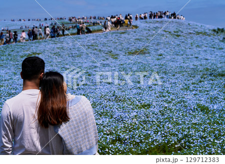 国営ひたち海浜公園 ネモフィラの丘と寄り添うカップル