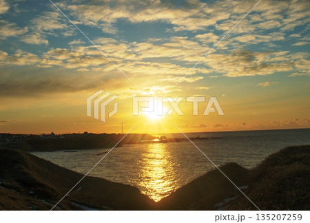 昇る朝日が海面を照らす朝焼けの襟裳岬6