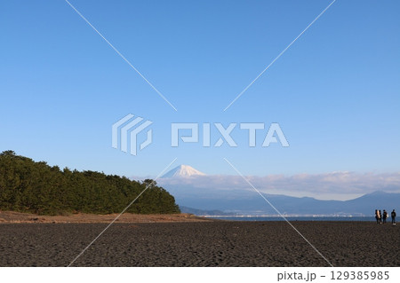 三保松原 日本三大松原と青い海の白波越しに雄大な富士山を望む 世界文化遺産 日本新三景 国の名勝