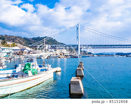瀬戸大橋に臨む岡山県倉敷市下津井田ノ浦漁港
