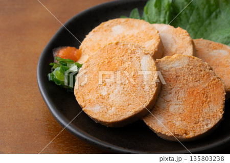 海のホアグラと呼ばれる鮟鱇の肝のポン酢あえの写真