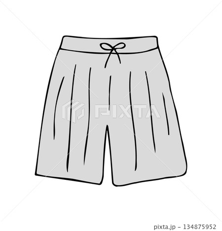 Hand draw shorts, men swimsuit vector illustration. Swimming trunks doodle icon.