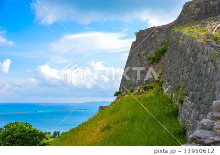 沖縄・読谷村 座喜味城跡から望む石垣と海の風景