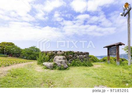 対馬 秋晴れの青空と異国の見える丘展望台の風景 10月