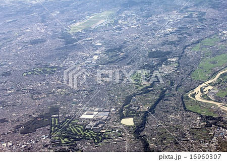 東京都町田市上空から望む神奈川県大和市、座間市、綾瀬市、相模原市の市街に米軍座間と厚木基地を見る