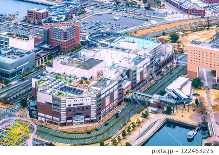 日本の横浜都市景観 サークルウォークやJICA横浜 海外移住資料館などを望む