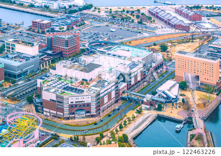 日本の横浜都市景観 新港サークルウォークやJICA横浜、新港ふ頭客船ターミナルなどを望む=26日