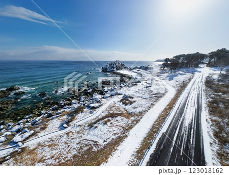 空撮「青森県」冬景色の中須賀・種差海岸 八戸市