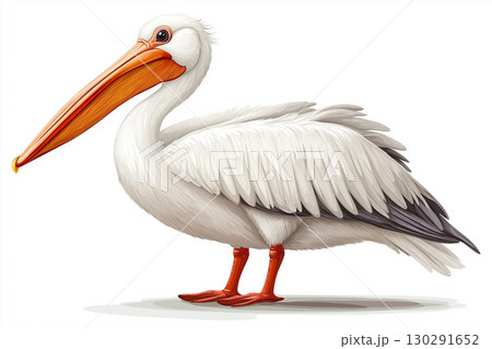 Pelican bird with white feathers and large beak in natural wildlife habitat