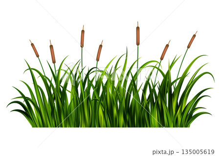 Grass reed vector illustration isolated on white background. Tall bulrush on swamp and lake. River bank wild green shrubs and thicket. Coastal summer nature with aquatic plants