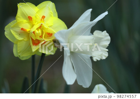 華やかさが増す水仙の花の群落