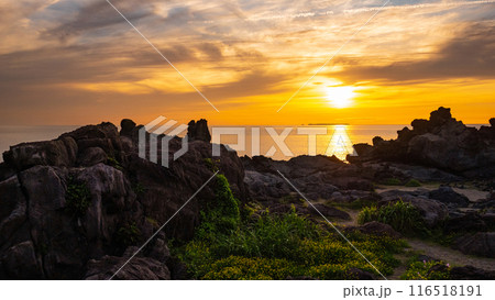 世界遺産「鬼ヶ城」(三重県・熊野市)の朝焼け