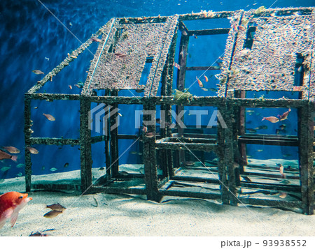 旅行 海の中 魚 小魚 家 ハウス 複数 いっぱい 大群 深海 海の底 美しい 青色 魚の群れ 旅
