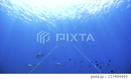 熱帯魚が彩る美しい海の世界。南国リゾートの観光イメージ背景素材