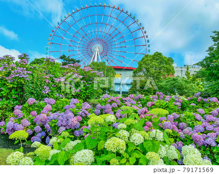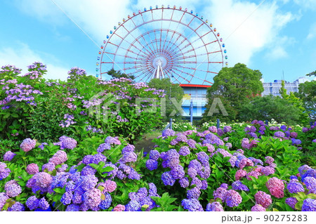 お台場水の広場公園 紫陽花と大観覧車