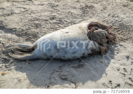Dead seal carcass washed up at Narin Beach in Portnoo - County Donegal, Ireland