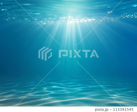 爽やかなブルーの水中に立ちのぼる泡(AI生成画像)