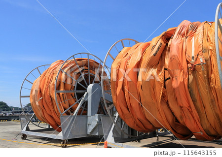 巻き取られているオイルフェンス