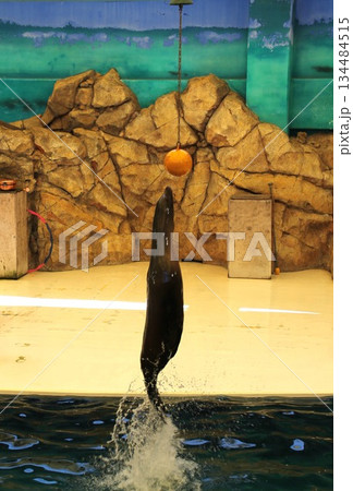 ボールを鼻に乗せたアシカ