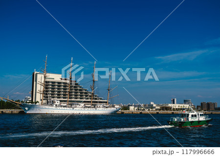 帆船がある港の風景 神戸港に停泊中の海王丸