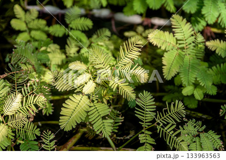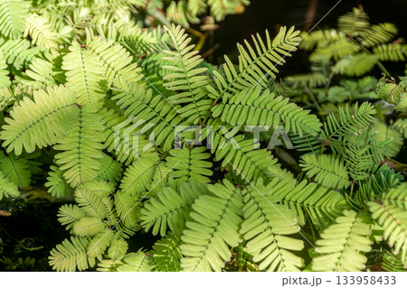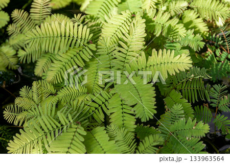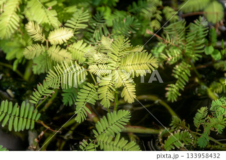 葉に触れるとお辞儀するミズオジギソウの小葉【マメ科】