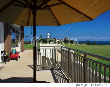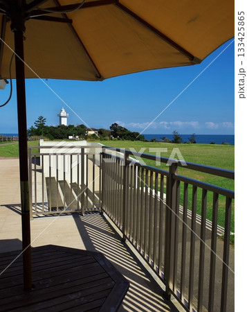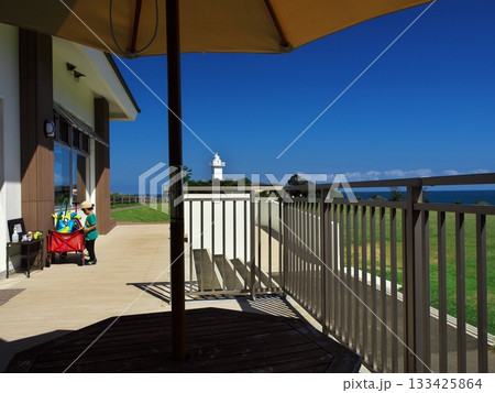 伊勢志摩 秋空の安乗岬園地 きんこ芋工房上田商店 灯台カフェから灯台を望む