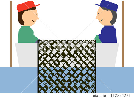 海苔を収穫している人のイメージ素材