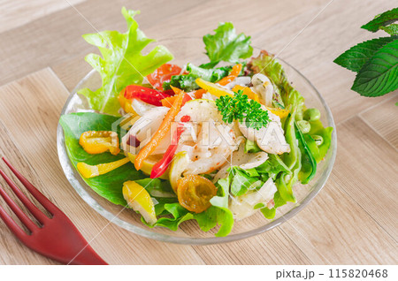 シーフードサラダ ヘルシーサラダ 海鮮と野菜 健康料理 イメージ素材