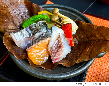 鯛と秋鮭と青魚の海鮮陶板焼き