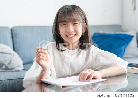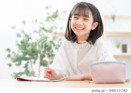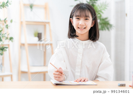 自宅で勉強をする小学生の女の子