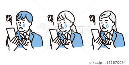 焦り、悲しみ、困惑、驚きのビジネスパーソン(女性)イラスト素材