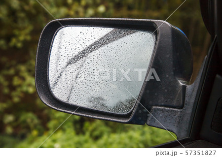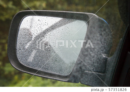 car mirror with raindrops