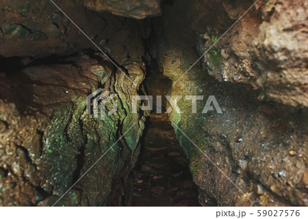 A long tunnel entrance to the cave, underground