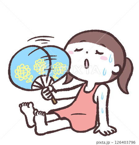 うちわであおぐ女の子のイラスト