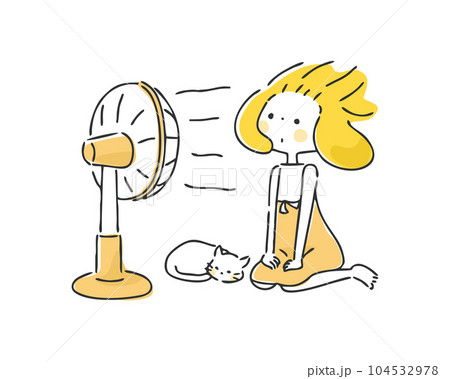 扇風機で涼む女性のイラスト