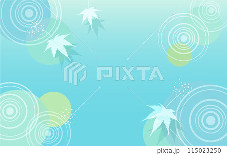 涼しげな水輪と楓の葉っぱの背景イラスト素材 ベクター 夏 ギフト 水紋 水