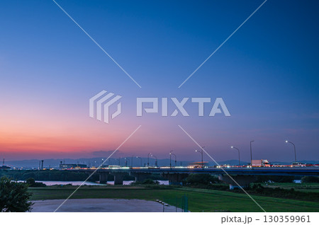 日暮れ時の淀川新橋風景