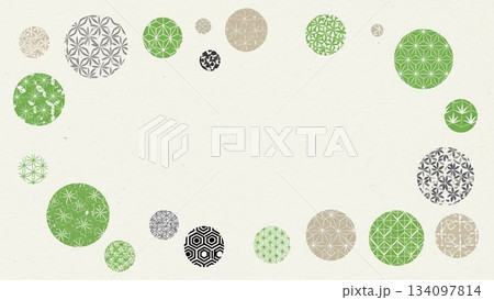 淡い緑色の和柄模様が並んだ和風フレーム背景デザイン