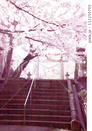 満開の桜と神社の鳥居(ノスタルジックな雰囲気)
