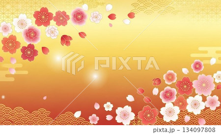 金色背景に桜が舞う華やかな和風フレームデザイン