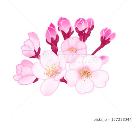 春の日に薄紅色の花を咲かせる桜と蕾