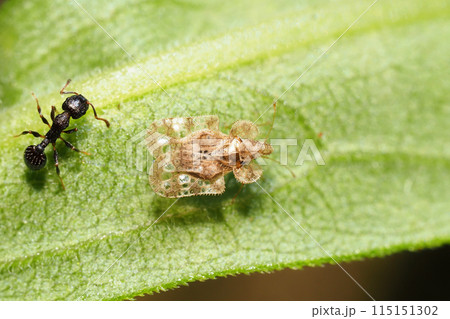 アワダチソウグンバイと蟻