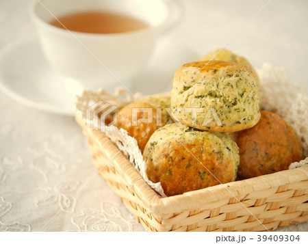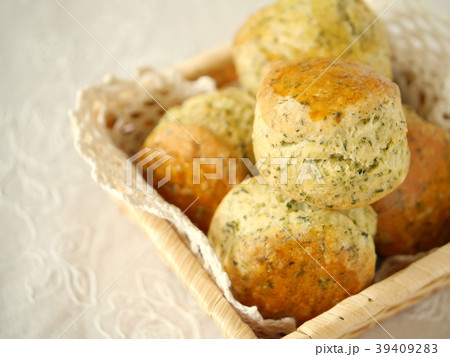 煎茶のスコーン かご盛り (ハイアングルアップ)