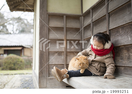 のんびり過ごす猫と少女