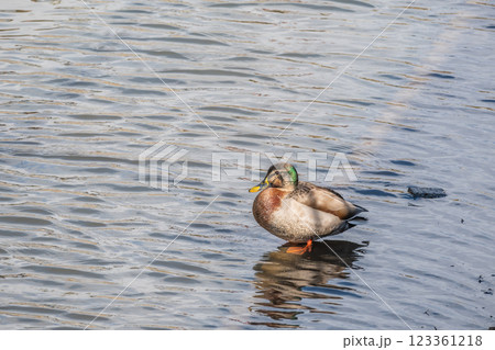 マルガモ(マガモとカルガモの交雑種)とカルガモ 京都市鴨川