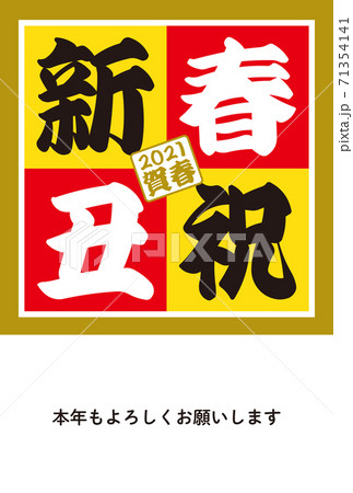 2021 年賀状 新春 丑年 添え書き 四角いデザイン