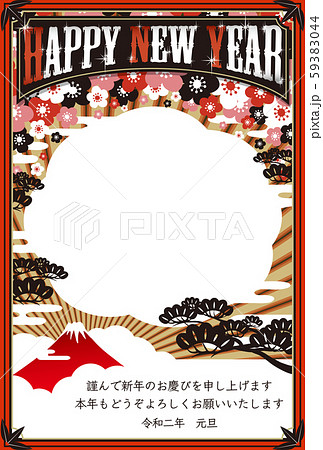 2020年賀状テンプレート「富士山と初日の出のフォトフレーム」謹賀新年 日本語添え書き付