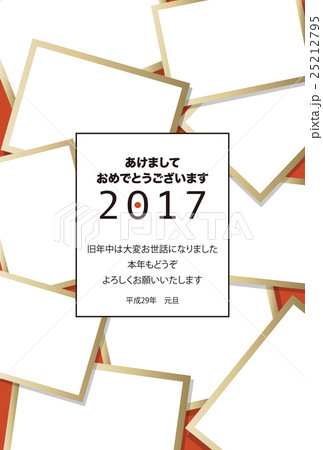 2017年賀状テンプレート「大盛りフォトフレーム」あけおめ 添え書き入り 縦