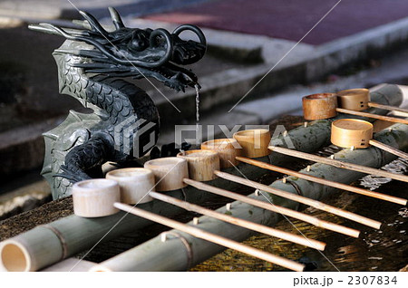 神社の境内にある竹と水